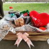 Cesta de Café Colonial em madeira com Coração de Pelúcia